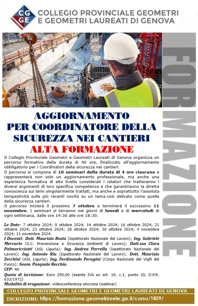 I crediti formativi maturati saranno assegnati ai Geometri entro 60 giorni dalla data di conclusione. Al termine del corso dovrà compilare il test valido per l'attribuzione dei cfp.