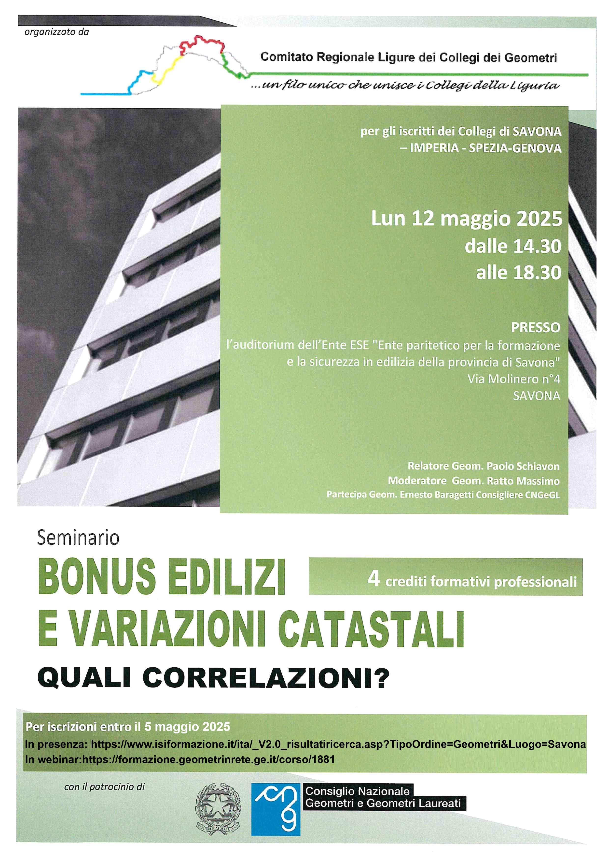 IN PRESENZA https://www.isiformazione.it/ita/_V2.0_risultatiricerca.asp?TipoOrdine=Geometri&Luogo=Savona
