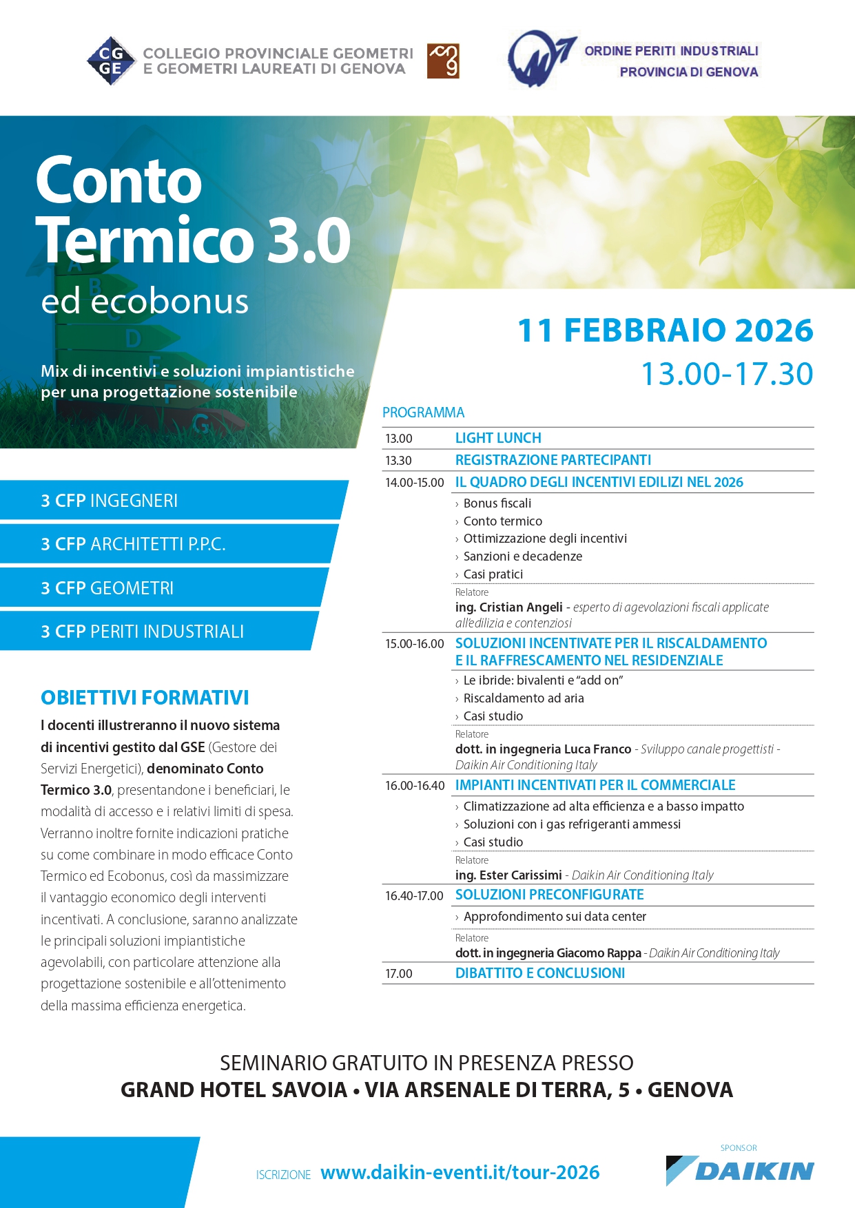 Per partecipare occorre iscriversi a WWW.daikin-eventi.it/tour-2026