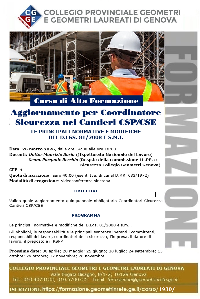 Valido quale aggiornamento quinquennale obbligatorio Coordinatori Sicurezza Cantieri