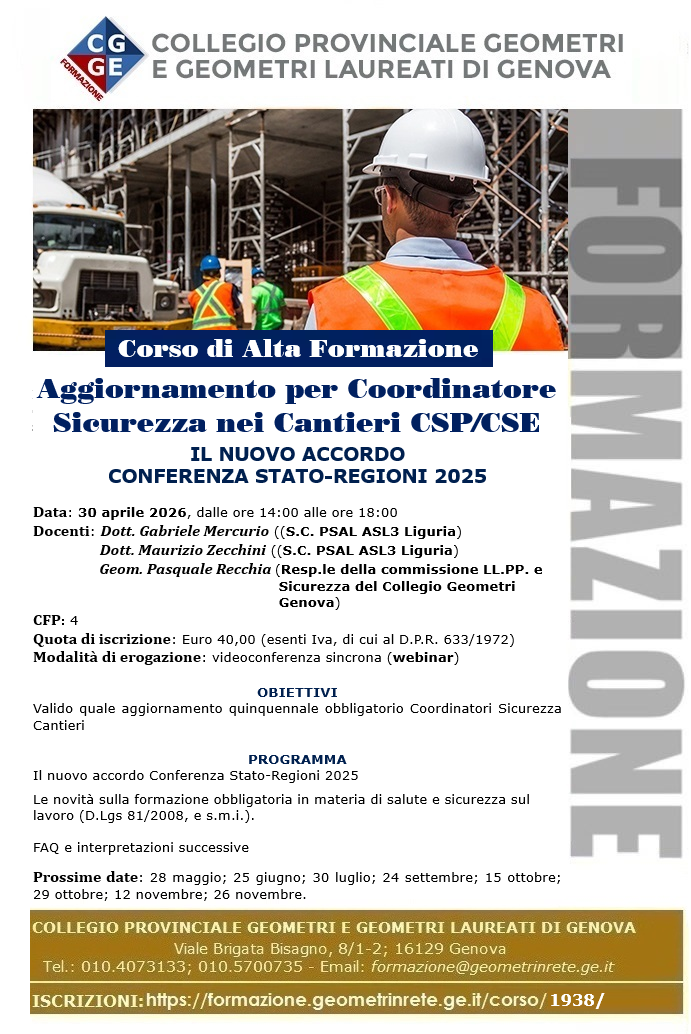 Valido quale aggiornamento quinquennale obbligatorio Coordinatori Sicurezza Cantieri